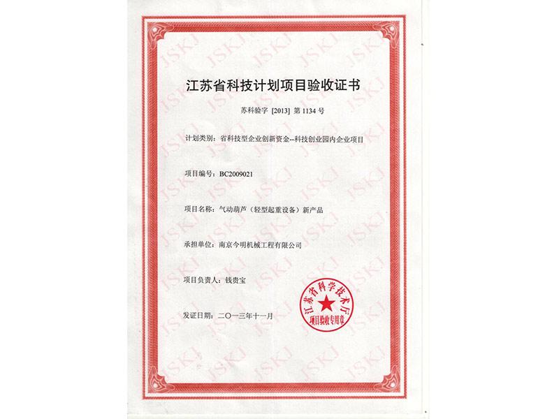 • 江蘇省科技計劃項目驗(yàn)收證書